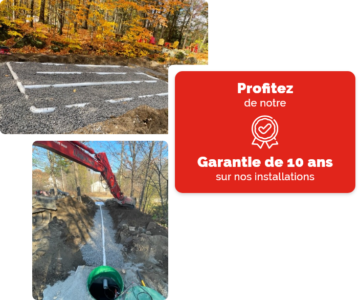Chez Septique DD, notre expertise repose sur plus de 20 ans de savoir-faire et un souci du détail reconnu. C’est pourquoi nous offrons une garantie exceptionnelle de 10 ans sur nos installations, incluant pièces et main-d’œuvre.